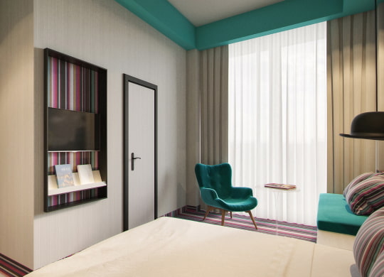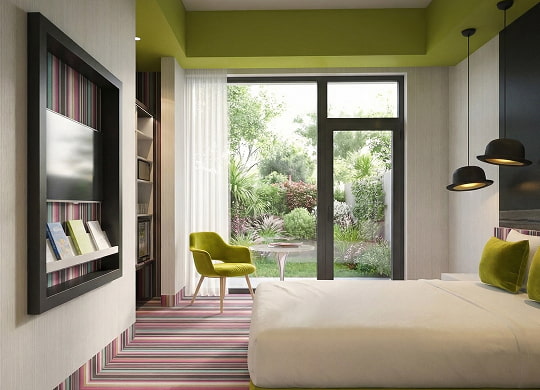 - 5 rooms with a double bed (180 × 200), street view with Sky View windows